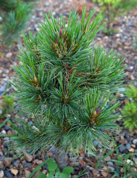 Близок к сосне кедровой сибирской, от которой отличается меньшим ростом и более широкой, яйцевидной кроной, более длинной и тонкой хвоей и меньшими размерами шишек и семян. Дерево 10—25 метров высотой и диаметром ствола до 1,5 метров. Хвоинки длиной 5—9 сантиметров и шириной около 1 миллиметра, собраны в пучки по 5 штук. Шишки длиной 4—8 сантиметров, шириной 6—7 миллиметров; семена длиной 8—12 миллиметров, крыло небольшое. В молодом возрасте дерево обладает прямым стволом и тонкой кроной.